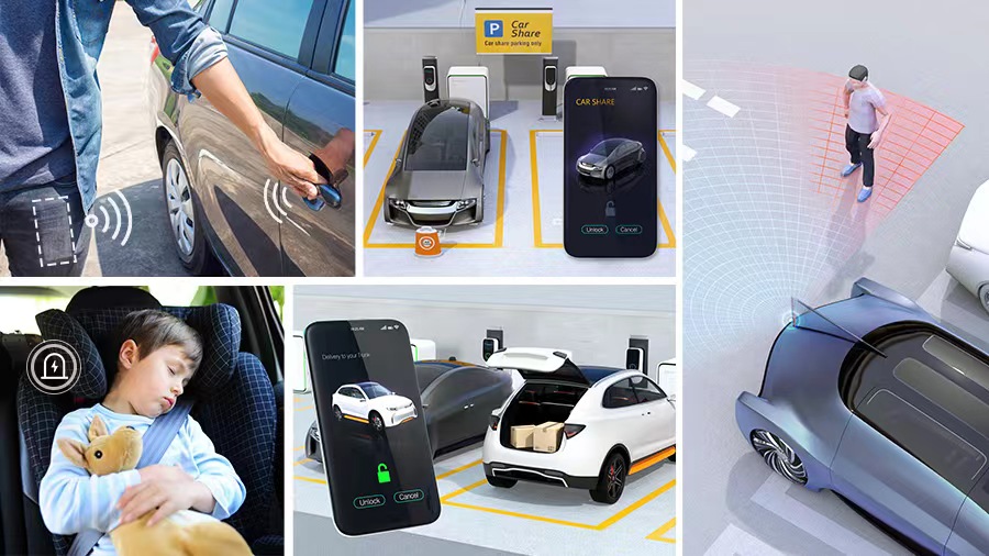 AU30Q模组内置一根天线,可提供更优的位置定位能力、增强的安全性以及可靠的数据传输,因此特别适用于智能汽车门禁应用,例如无钥匙进入、车内乘客检测、人员接近检测、非接触后备箱开启、电动汽车无线充电以及汽车换电等。
