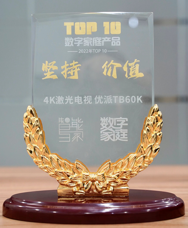 智能超短焦影院级激光投影仪优秀产品的TB60K,获得了智能与家组织评选的2022年最坚持价值的数字家庭产品。TB60K是一款4K智能超短焦影院级激光投影仪,它将4K超高清分辨率、HDR/HLG、100%Rec.709影院色彩、JBL扬声器与杜比/DTS相结合,采用了第二代激光荧光技术,可提供350nits高亮度及20000小时以上的使用寿命,加上0.22超短焦投射比,靠墙仅距离33cm即可呈现120寸的巨屏画面,让用户将多种应用场景秒变影院。