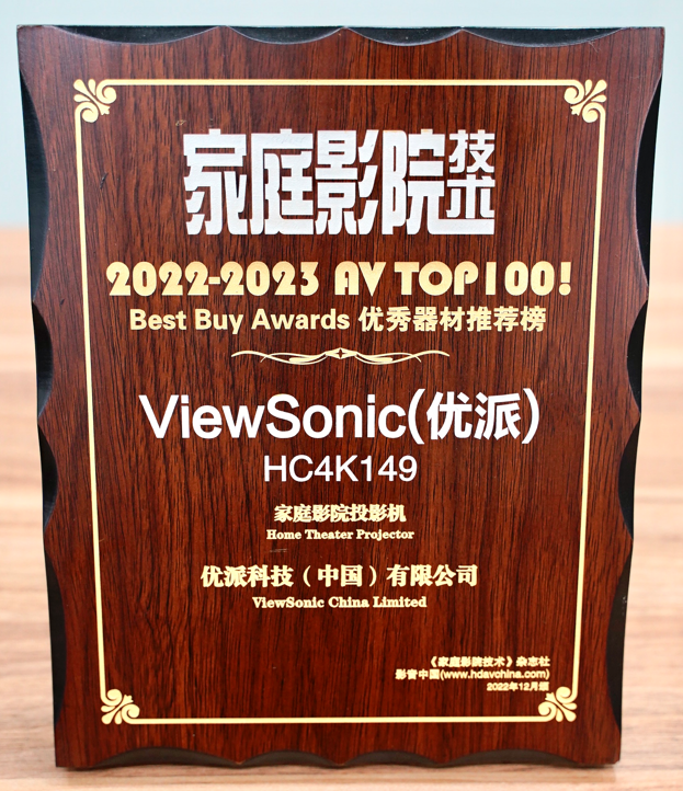 4K家庭影院投影机HC4K149入选《家庭影院技术》杂志为影音爱好者推出的2022-2023“AV TOP 100”优秀影音器材推荐榜。HC4K149设有1.13~1.47黄金投射比,只要2.5米投距,即可投出100英寸的画面;支持HDR高动态影像,加上搭载的优派SuperColor炫彩技术,展现出更好的色彩表现力;采用了1.3X大变焦,支持曲面、球形以及圆柱形画面投影,多种创意轻松呈现在用户眼前。