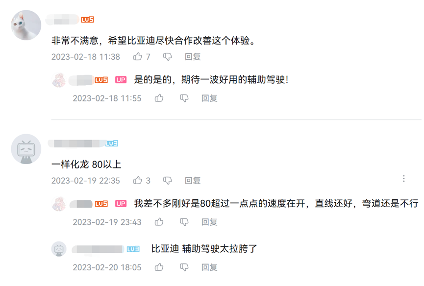 网络上确实有不少对于比亚迪辅助驾驶的吐槽,希望尽快优化。