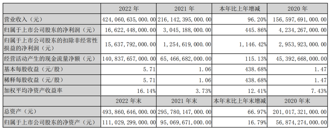 据比亚迪2022年财报显示,比亚迪2022年营收和净利润相比2021年都翻了将近一倍。