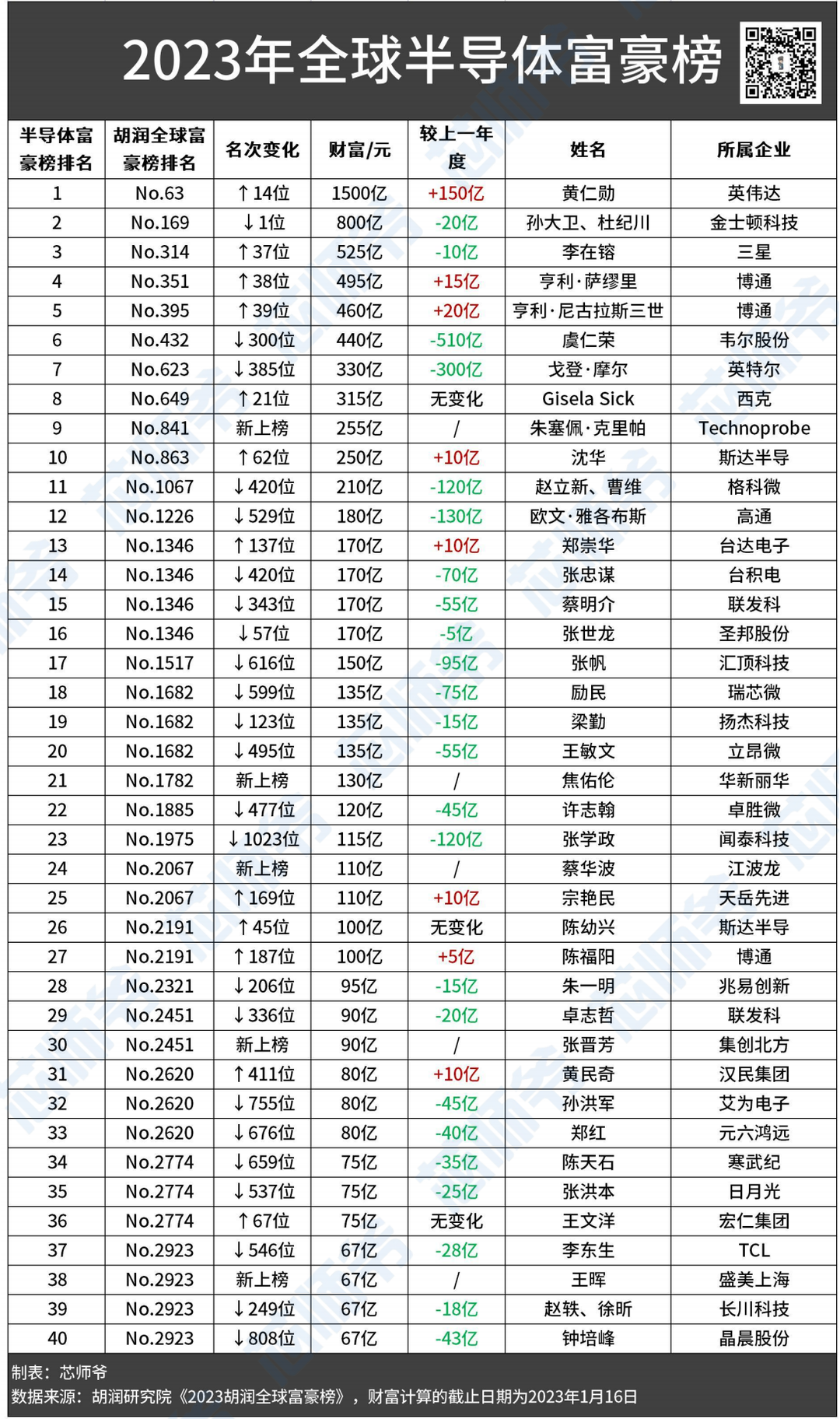 2023年全球半导体富豪都有谁?不说废话,咱直接上榜单:
