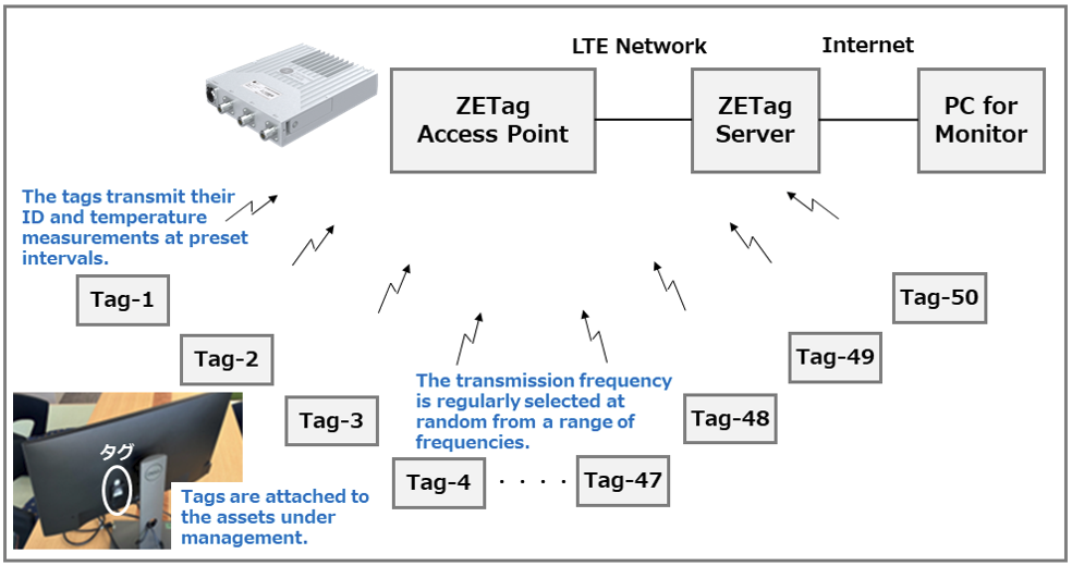 2022年9月, ZETA联盟企业在室外实施了基于Advanced M-FSK调制方法的通信测试,实现了较以往云标签相比更稳定的通信。本次演示实验选择了通信环境更为严苛的室内进行,验证了资产管理为应用场景的通信性能。实验利用Socionext 2023年3月正式量产的ZETag芯片SC1330A进行,该芯片支持Advanced M-FSK调制方法,由 ZETA联盟企业凸版印刷株式会社试制。