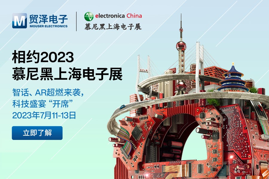 专注于引入新品推动行业创新™的电子元器件代理商贸泽电子 (Mouser Electronics)宣布将于7月11日-13日重磅亮相2023慕尼黑上海电子展(展位号:6.2H馆D132展台)。届时,贸泽电子将携手国内外知名原厂 Analog Devices, Abracon, Amphenol, DFRobot, Espressif Systems, 英飞凌(Infineon), Littelfuse, Microchip, Molex, Nordic Semiconductor, Phoenix Contact, Renesas Electronics, Sensirion, Silicon Laboratories, STMicroelectronics, TE Connectivity, VICOR等带来全新开发板和创新技术解决方案,为您呈现人工智能、新能源汽车、绿色能源、智能工厂、工业互联网、传感技术、数据中心、物联网、无线射频、智能家居、可穿戴等多个领域的技术与应用话题。