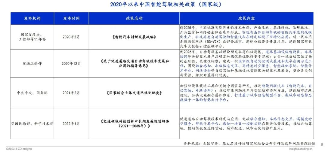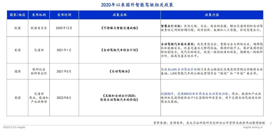 自2020年以来,国内外出台多项政策持续推动智能驾驶产业发展。