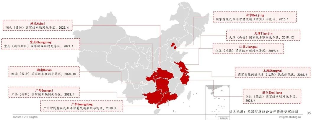 车路协同通过新一代无线通信和互联网技术,进行车辆安全控制和道路协同管理,全面实现人、车辆和道路的有效协作。与单车智能相比,V2X增加路侧设备和云的部署,有效降低单车智能的技术难度。目前,我国多个省市已建立智能网联汽车的先导区/示范区,加速车路协同的落地进程。
