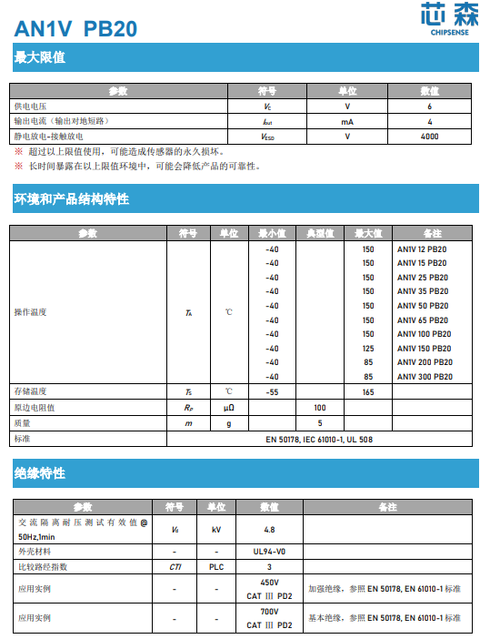 传感器可用于交流变频调速、UPS、SMPS、电池管理、变频器等多种应用等检测及控制系统。典型温度应用范围为-40~150°C,隔离耐压3kv~4.8kv。传感器模块符合RoHS和UL标准。