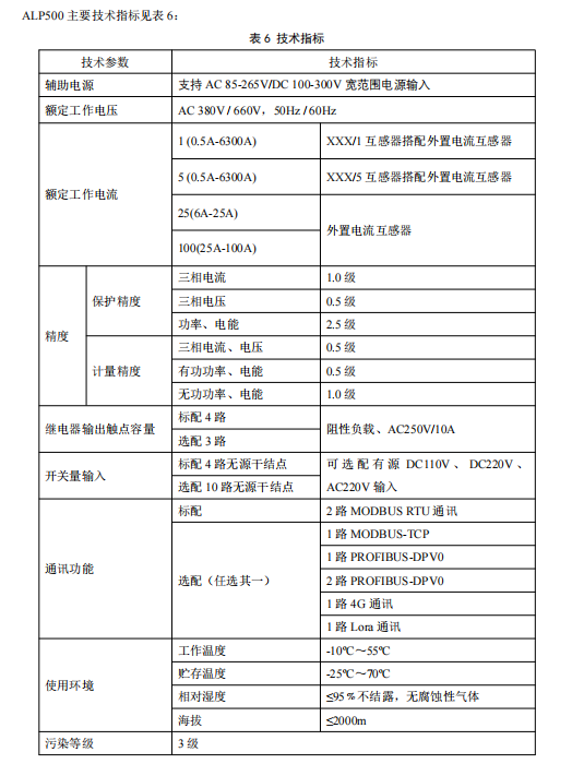ALP500 低压保护测控装置(以下简称低压保护装置)适用于额定电压至 AC660V 低压配电回路,集电力监控、馈线保护、分合闸控制、通讯组网、节点测温、运维管理等功能于一体。具备反时限过流、三段式过流、过功率、零序过流、欠压、过压、不平衡(电压、电流)、零线过电流、漏电流等多种保护功能。可选配不同通讯模块适应现场通讯需求。