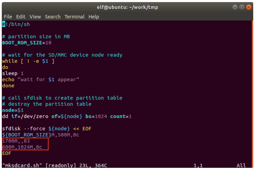 elf@ubuntu:~/work/tmp$ vi mksdcard.sh