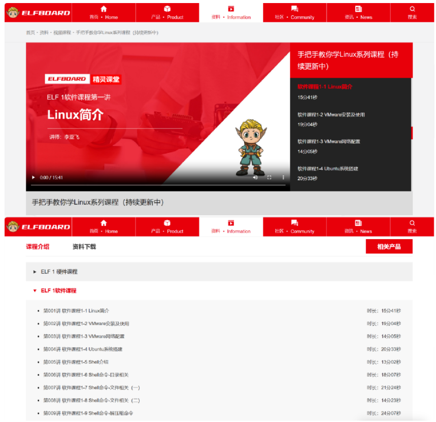 针对上述的学习路线,ElfBoard为各位小伙伴提供了详细的教程,内容主要分为以下四部分:Ubuntu系统入门、ELF 1开发板入门、应用篇、系统移植及驱动开发篇;这些教程资料都在ElfBoard的官网中免费提供给大家,后续还会继续更新关于嵌入式开发的其他课程,感兴趣的小伙伴可以登陆官网获取学习资料。