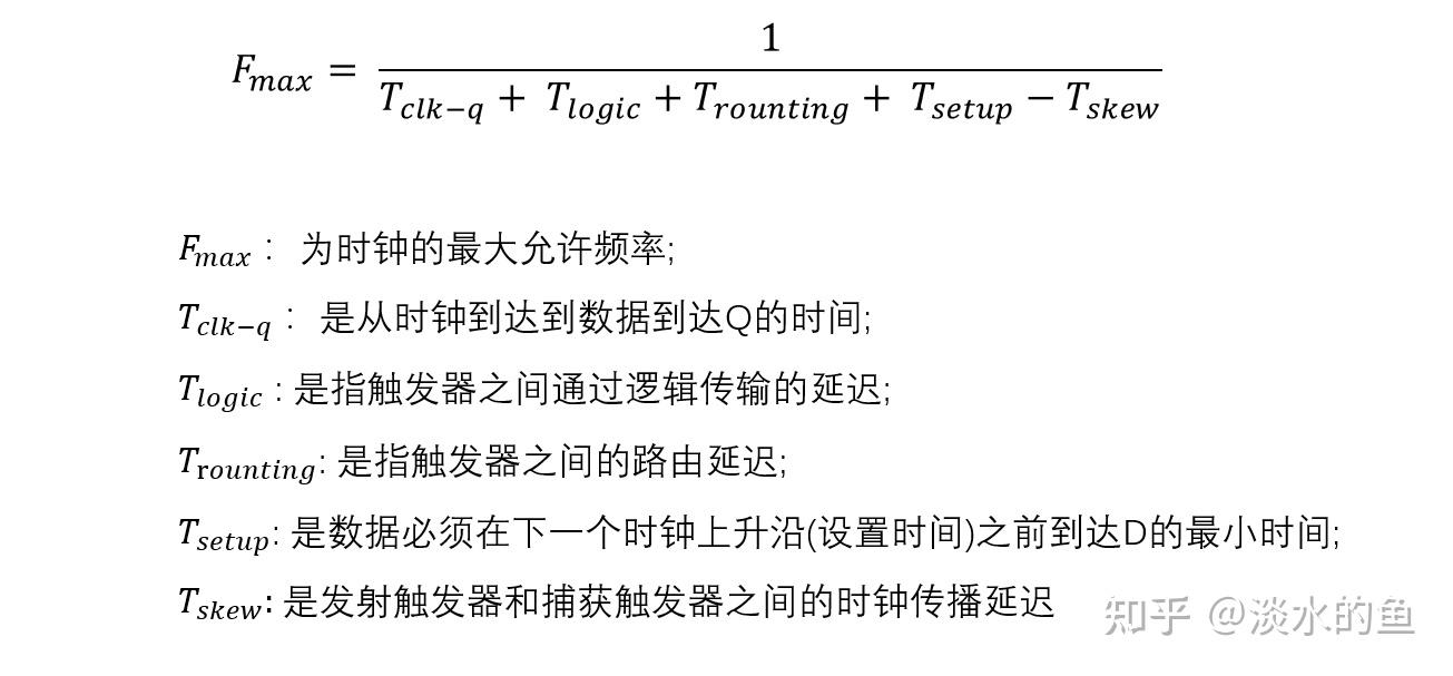 2.1.3时序:是指顺序元件之间的逻辑延迟。当我们说设计不“满足时序”时,我们的意思是关键路径的延迟,即触发器之间的最大延迟(由组合延迟、时钟到输出延迟、路由延迟、设置时序、时钟偏差等组成)大于目标时钟周期。时序的标准度量是时钟周期和频率。