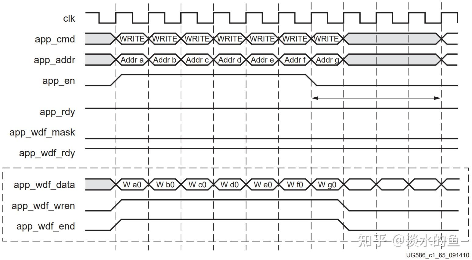 ②用户端写入数据到 MIG IP 核的带宽为:200M ×用户端数据位宽,因为 800M × 2 × 16bit = 200M ×用户端数据位宽,所以用户端数据位宽为 128bit