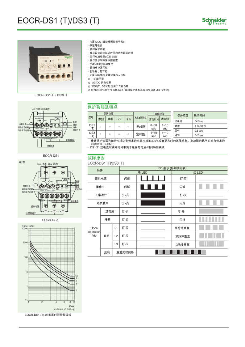 EOCR-DS3反时限电机保护器由承德尚越电子代理销售,该产品具有过电流,缺相,堵转的保护功能,是施耐德新款经济型电机保护器产品,电源电压在24-240v,电流范围是0.5-60,具体型号有:EOCRDS3-05S,EOCRDS3-30S,EOCRDS3-60S.