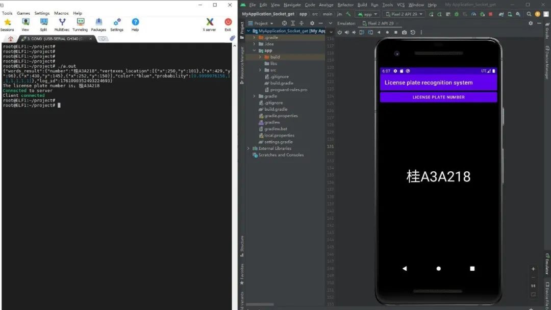 上面这段代码就实现了通过Socket接收来自开发板的车牌数据并将显示到TextView。