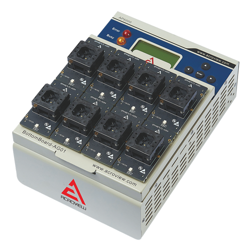 昂科技术自主研发的AP8000万用烧录器包含主机,底板,适配座三大部分。