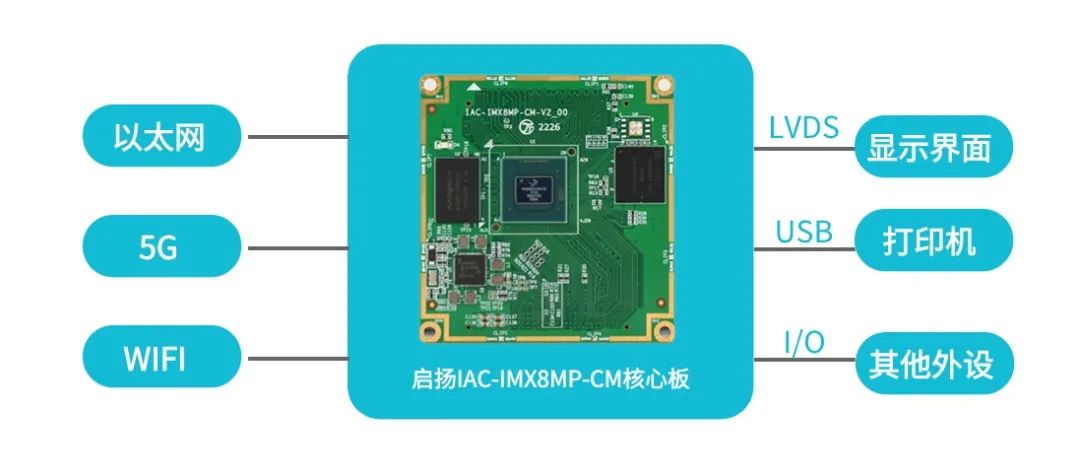启扬IAC-IMX8MP-CM核心板基于NXP i.MX8M Plus高性能处理器,采用四核Cortex-A53,主频可达1.6GHz,提供强大计算能力,用于处理复杂的算法和数据分析任务,一个Cortex-M7内核,用于实时监测设备状态、控制样本采集和分析过程;