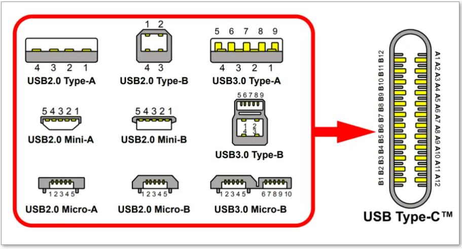 上行端口(Upstream Facing Port,UFP):设备 / 上行集线器端口,典型示例为传统的标准 Type-B 端口。