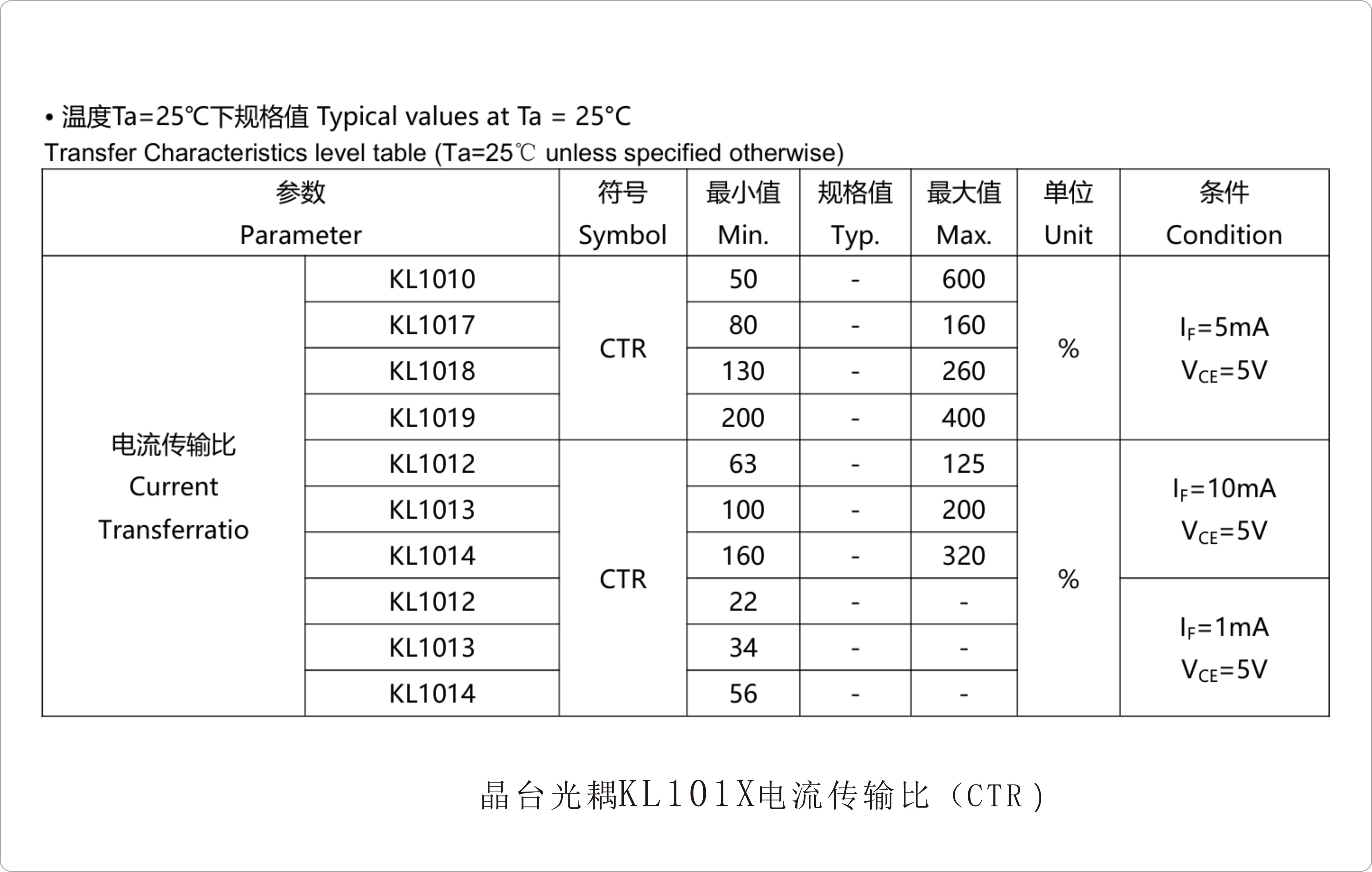 温度(Ta):温度升高通常会导致CTR下降,因此在高温环境下使用光耦时需要特别注意。
