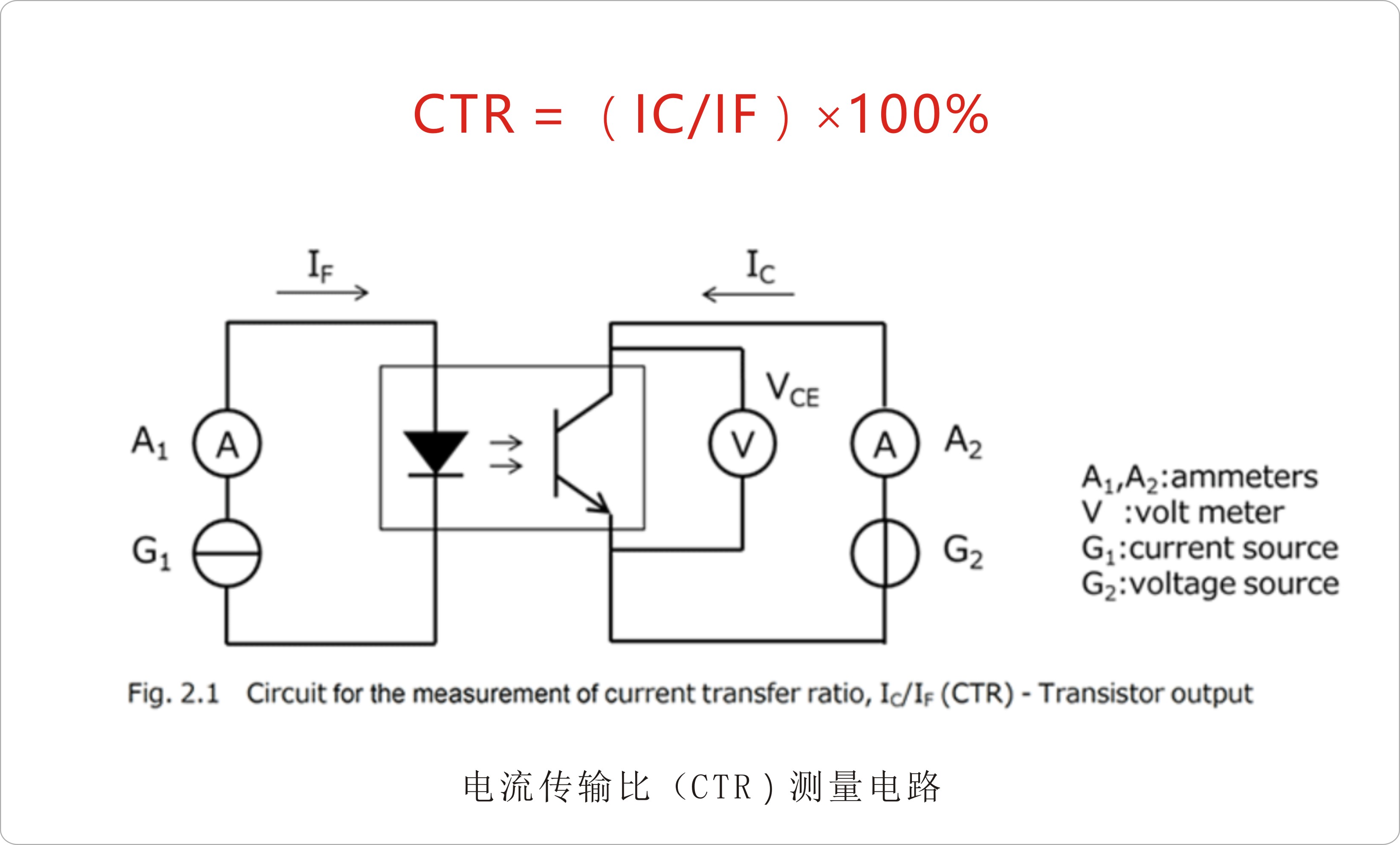 电流传输比(CTR)是指光耦内部输入与输出之间的电流转换效率。具体来说,它是输出侧集电极电流Ic与输入侧LED电流IF的比值,通常以百分比表示。CTR的计算公式如下:
