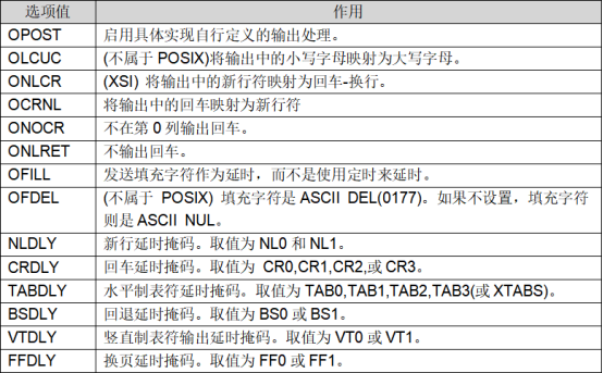 c_oflag选项值表: