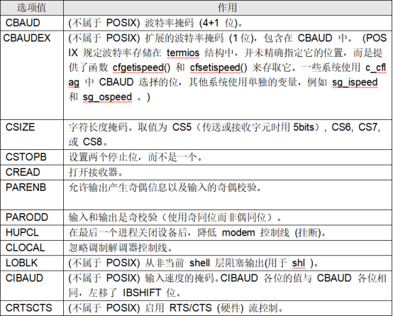 c_cflag选项值表: