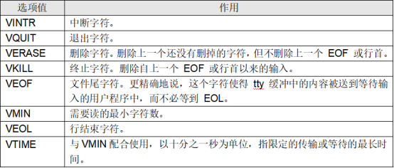 c_cc数组:特殊控制字符