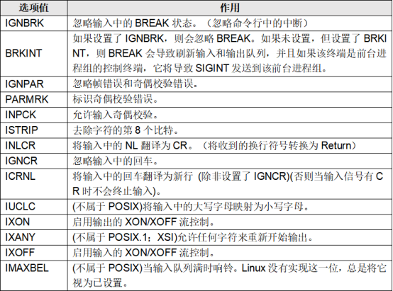 c_iflag选项值表: