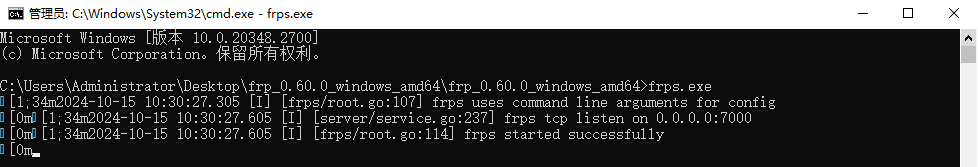 C:UsersAdministratorDesktopfrp_0.60.0_windows_amd64frp_0.60.0_windows_amd64>frps.exe