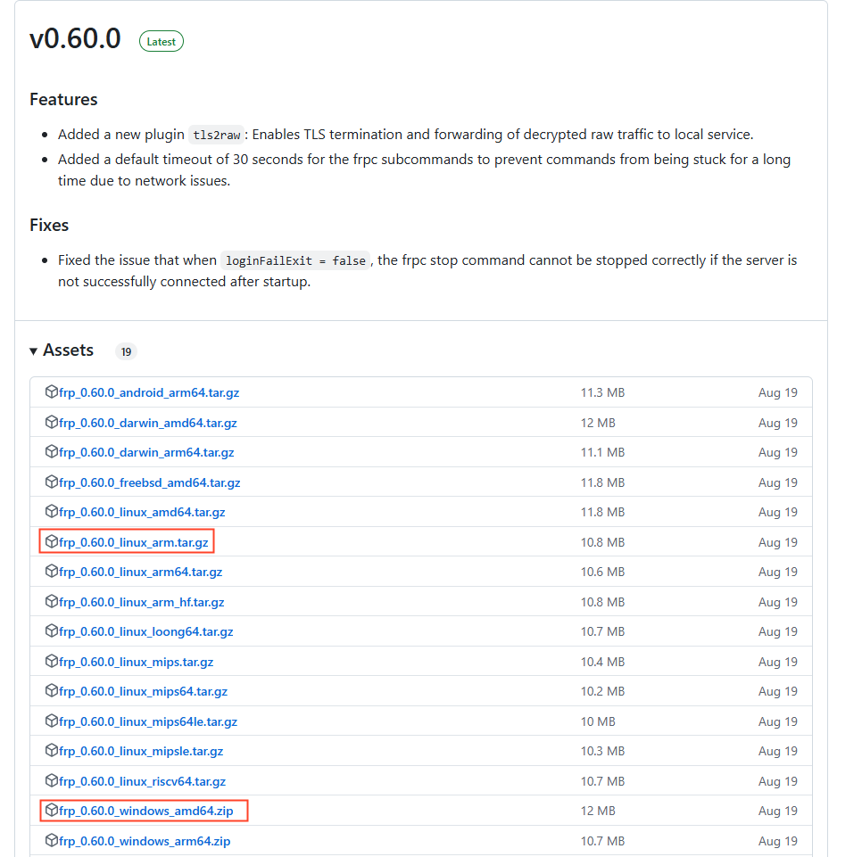 3、FRP程序:可以从GitHub页面下载最新版本。