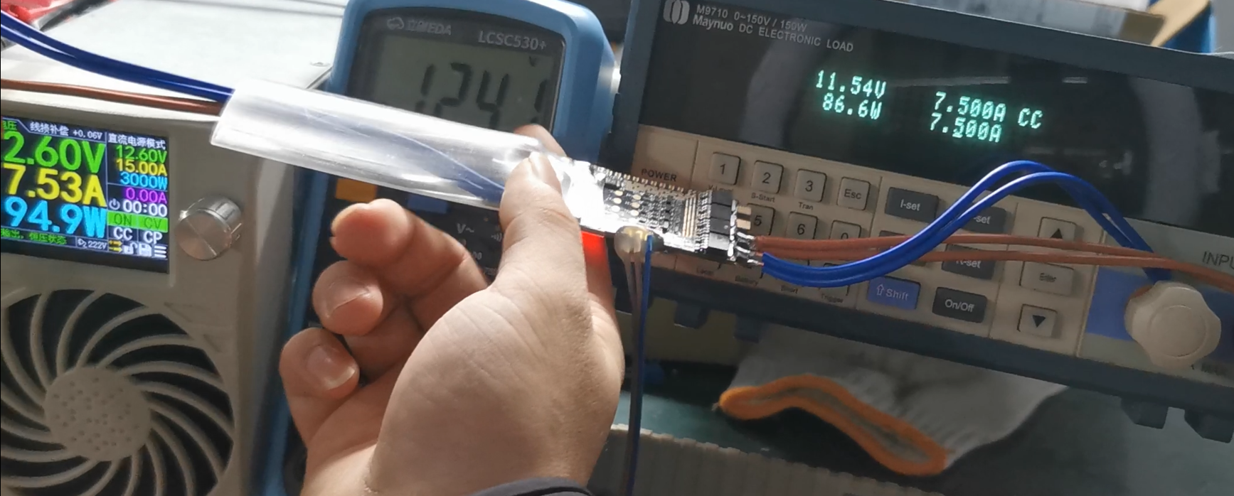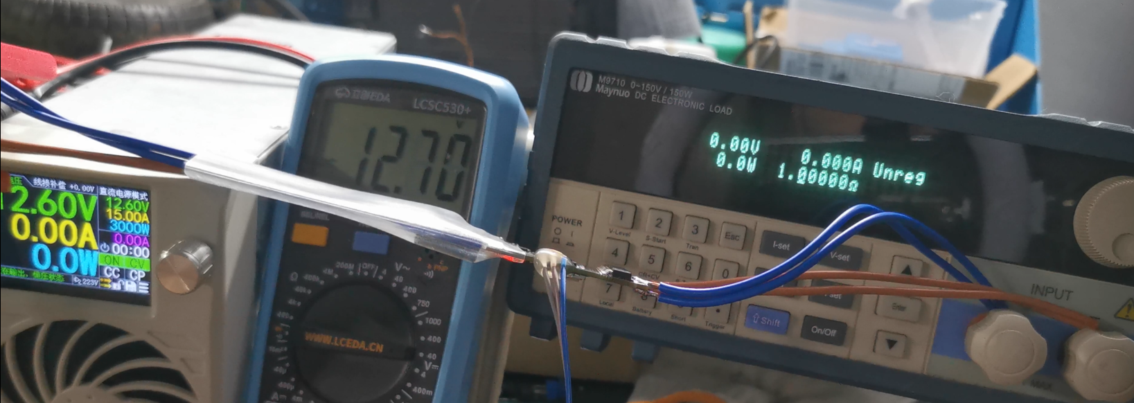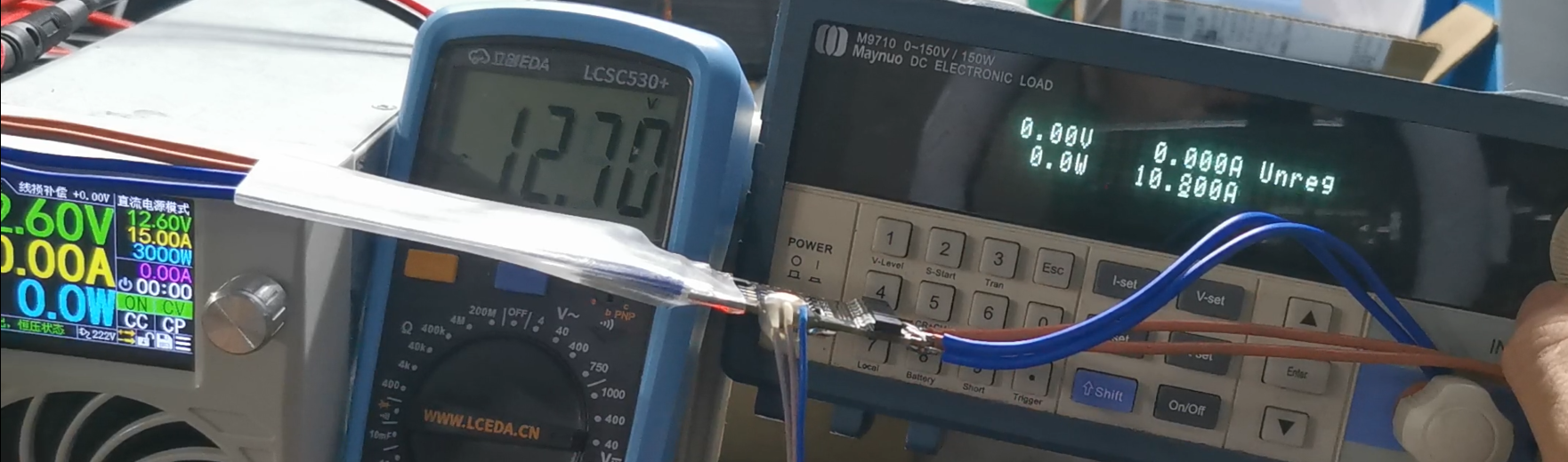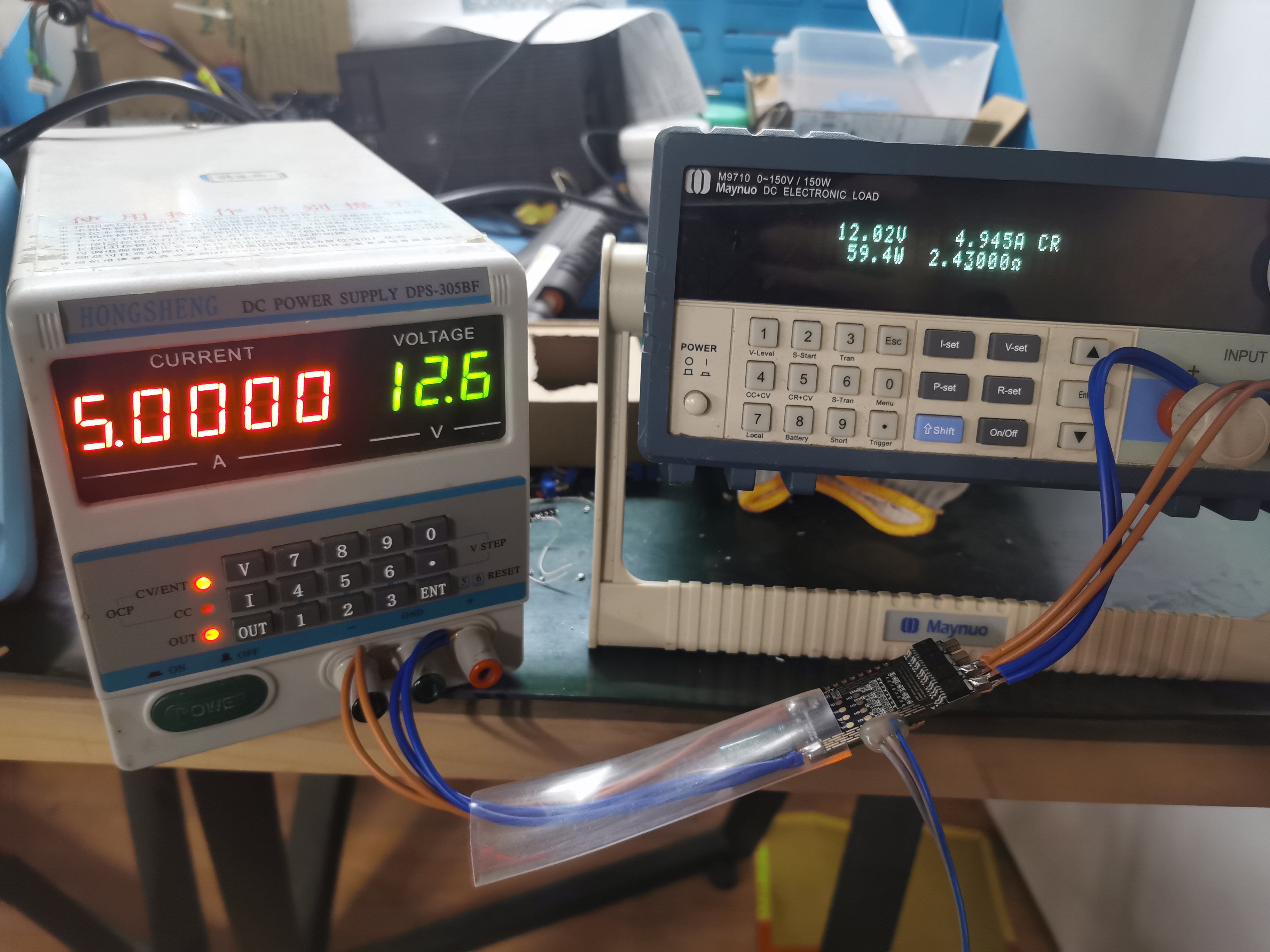 在负载阻值达到1Ω左右的时候,没过几秒板子就保护断开输出了。