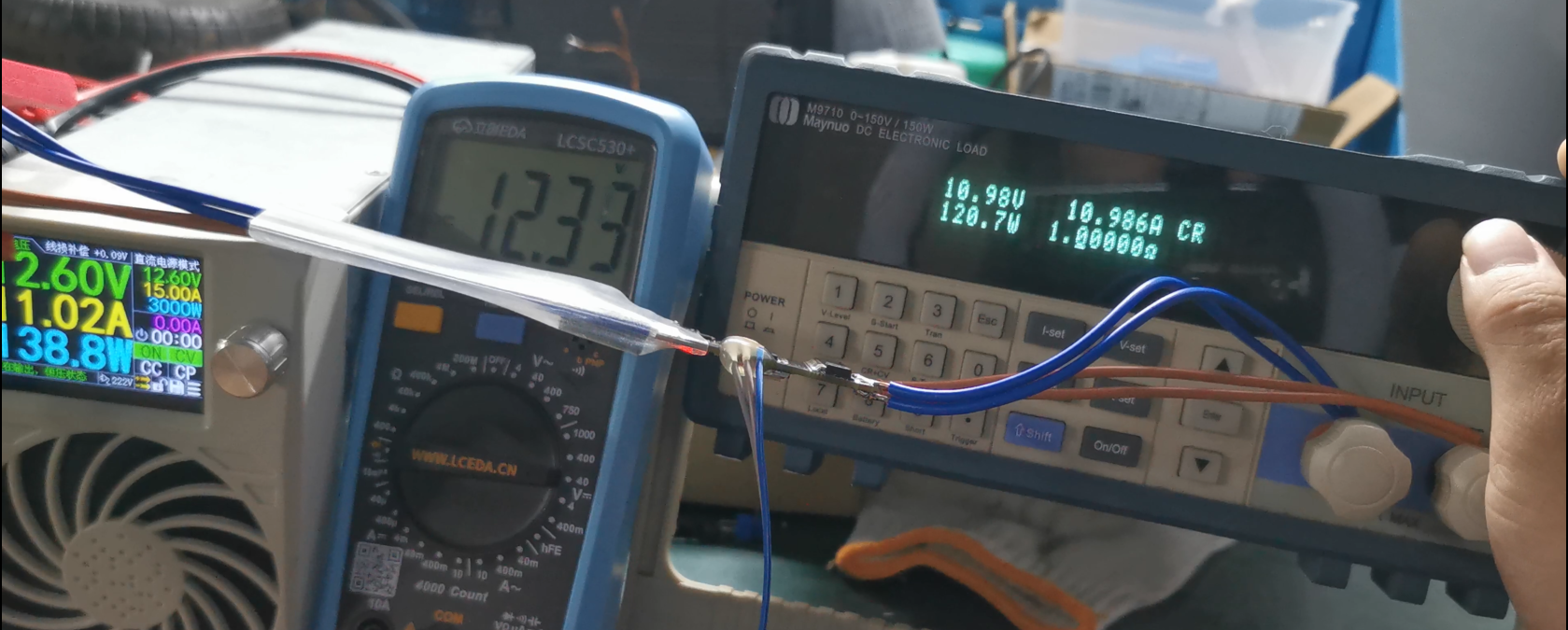 最后电流测试到10.8A的时候,坚持了2秒左右就保护断开输出了。