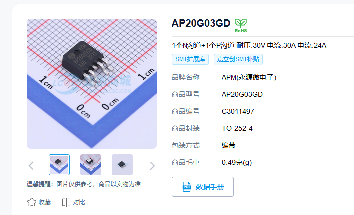 实际上板子上的MOS管是这个,当然,也是一颗PMOS+NMOS的组合。
