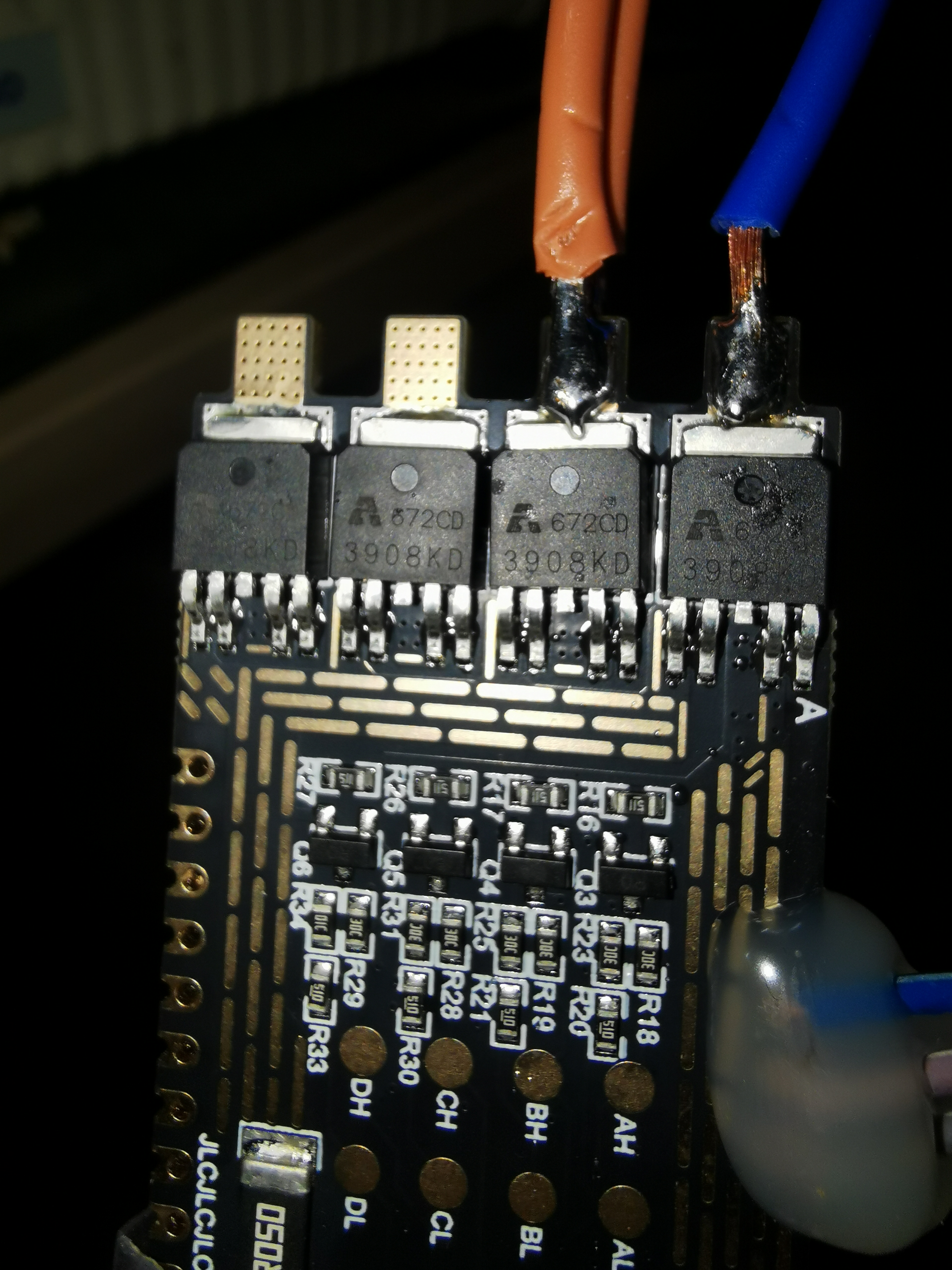 最初我是想把手上这块板子测到冒烟甚至BOOM的。但是后来发现公司那台电源输出电流不够,最高只有5A输出。此时板子还是“微凉”状态。这个时候我就知道此时的驱动板一定表示“你过来啊”。最后又发现固件有过流保护,在电流大到一定值之后就断开输出了。
