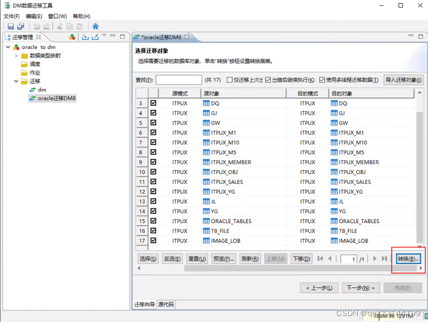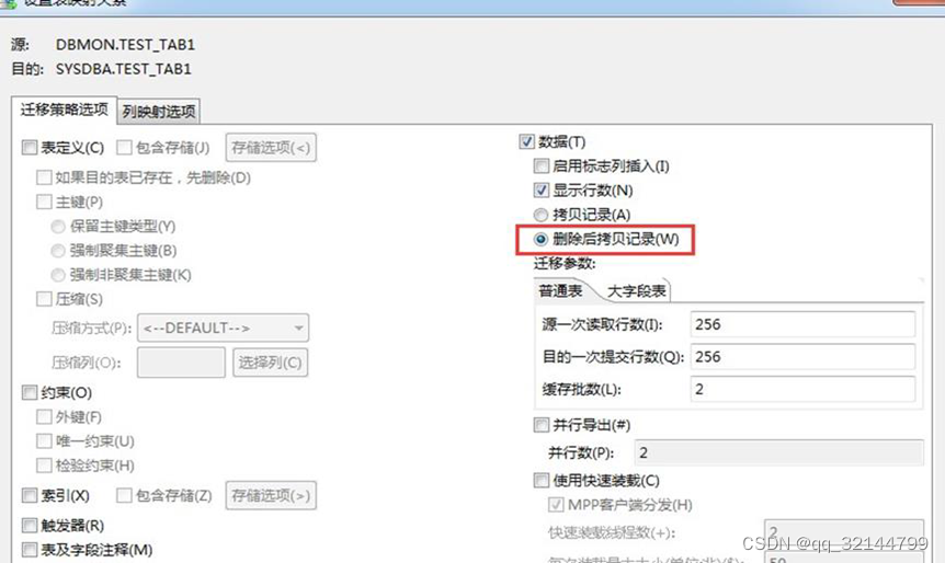 在确定源数据没有问题的情况下,迁移的时候选择删除后再拷贝,如下图: 在迁移界面中,先中要迁移的表,然后点击转换
