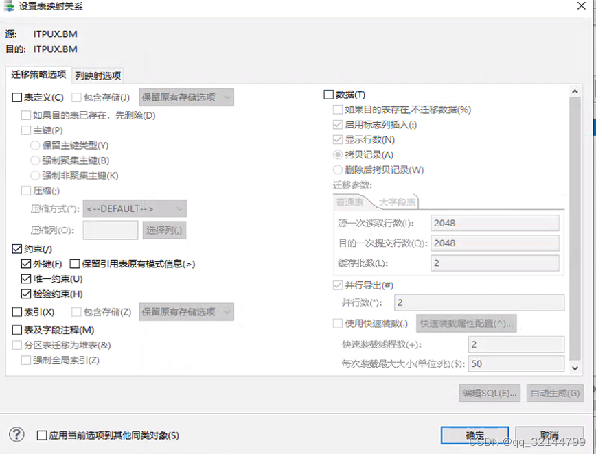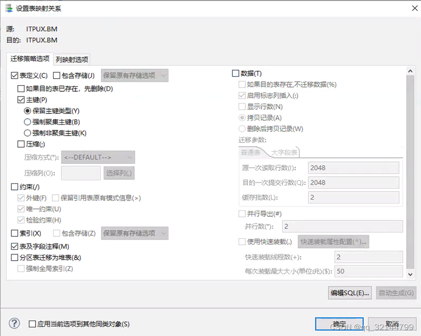 4.对于大字段较多的表,需要修改批量的行数,以免造成迁移工具内存溢出。