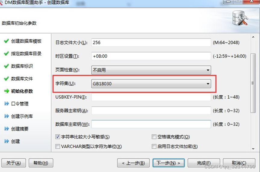 - 是在初始化的时候,字符集选择 gb18030 ,如下图