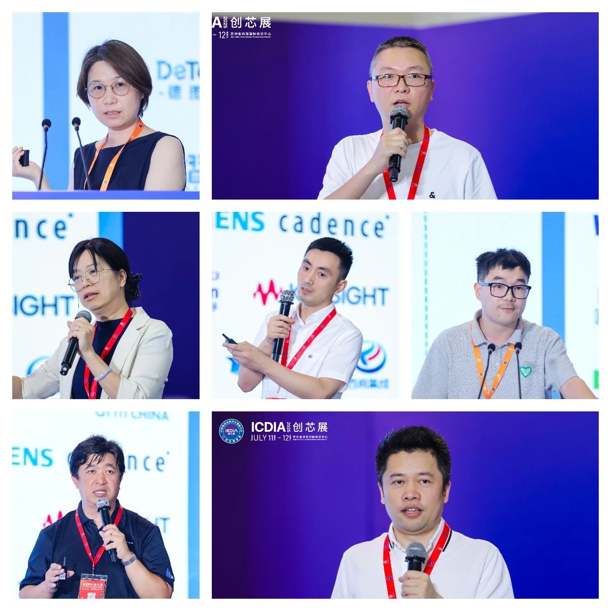 IC设计与创新应用论坛上午场:重庆物奇微电子副总裁庞功会,深圳市中兴微电子技术有限公司IC芯片系统专家级工程师王飞鸣,西门子EDA华东区销售总监陈宰曼,巨霖科技(上海)有限公司副总经理邓俊勇,安谋科技(中国)有限公司产品总监鲍敏祺,是德科技市场部经理阳任平,宁波德图科技有限公司创始合伙人蒲菠,中茵微电子(南京)有限公司技术总监薛军,Cadence技术销售总监陈思若围绕RISC-V、AI EDA、端侧AI、芯片测试、先进封装等话题发表主题演讲。