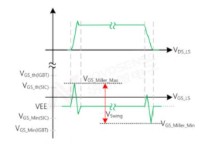 在使用SiC功率器件时,由于其高dv/dt特性,门极常常遭遇正负串扰电压(Vswing)幅度超出门极开启阈值(Vgsth)及负向耐压极限(Vgs_min)的情况。这种串扰容易导致误导通或器件损伤,是高性能驱动设计的一大挑战。
