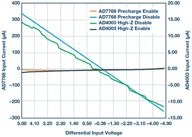 在AD7768中,电源等于或高于模拟输入范围。AD7768采用的解决方案称为预充电缓冲器,与高阻模式相反,其工作频率最高可达ADC最大采样频率。