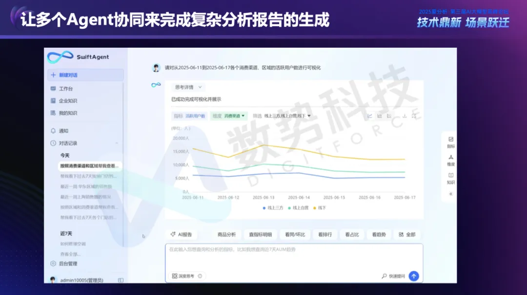 例如,以往仅能提取数据,但几千行数据对领导而言难以直接阅读。现在通过大模型的深度研究机制,使其理解企业内部指标体系,生成完整架构,并将报告以图表、文字等清晰形式呈现,便于开展深度归因复盘。