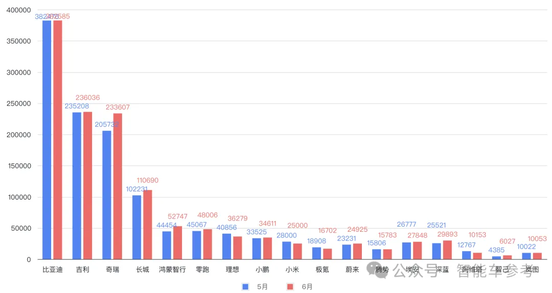 6月销量放榜,结合上半年整体情况,智能车参考得出以下十个有意思的结论: