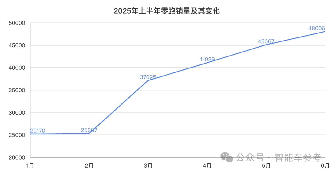 新势力品牌销冠应该是零跑,6月销量为45067辆,在B系列新品的推动下,上半年连续6个月环比增长,这在新势力中罕见,上半年累计销量超22.1万辆。