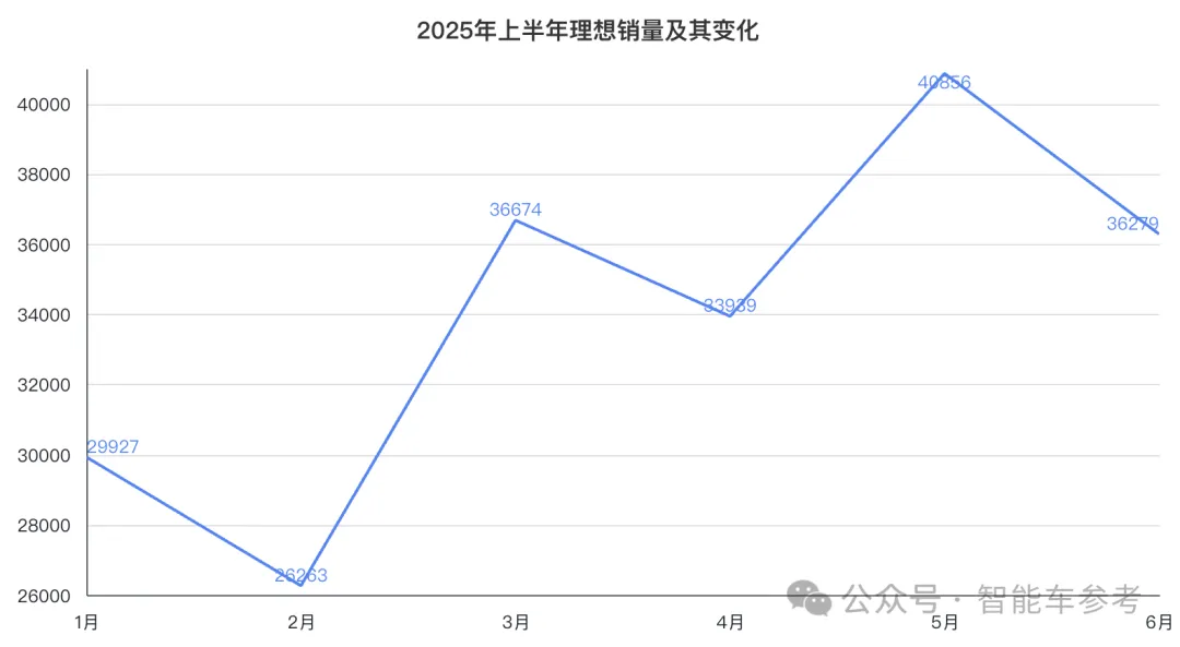 理想6月销量为36279辆,单月销量环比同比双双下降,上半年累计销量为20.4万辆,相较去年同期增长8%。