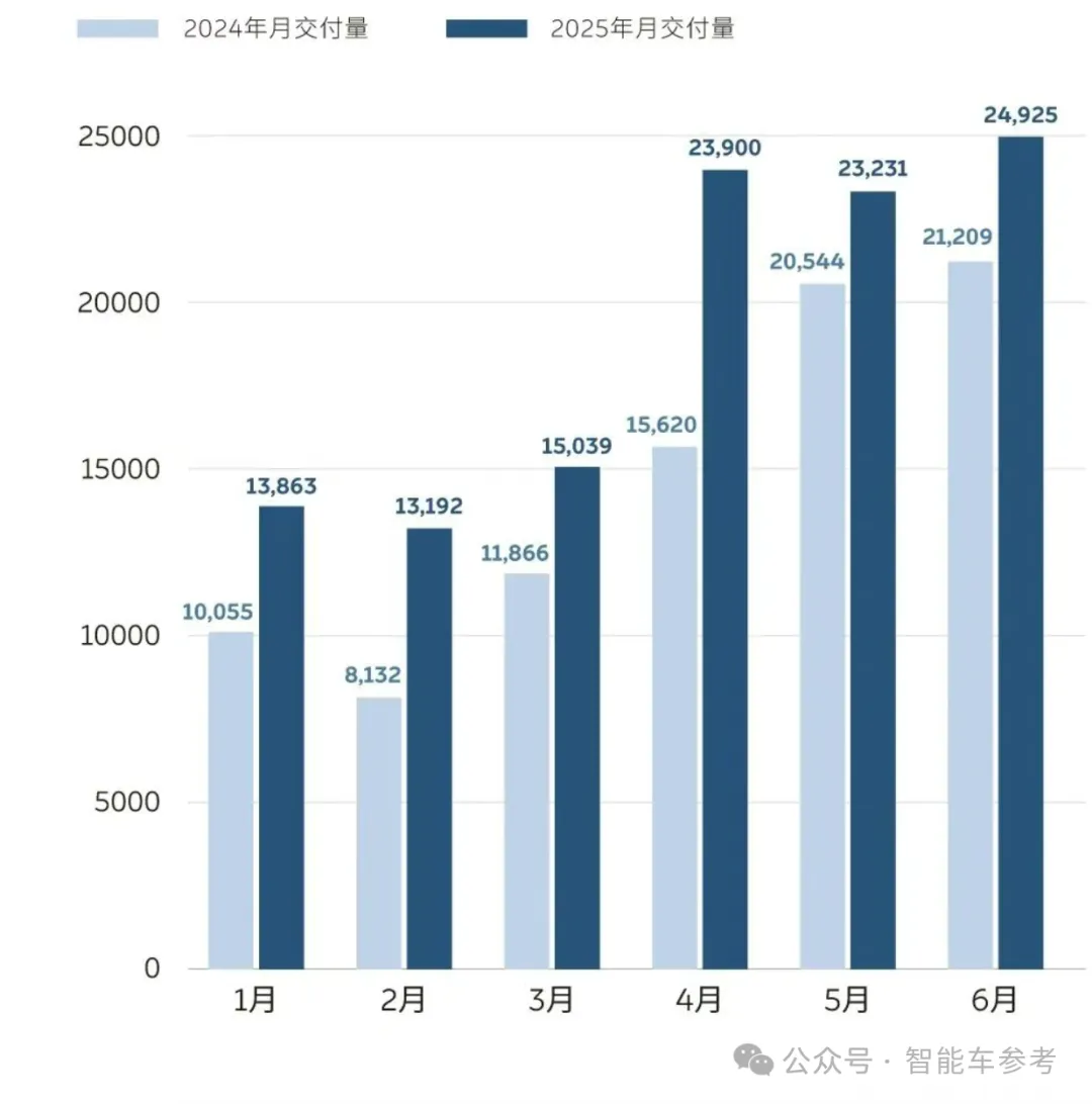 小米汽车6月交付车辆超2.5万辆,同比去年暴涨约250%,相比5月下滑大约10%,这也在预期之中,6月中旬就有消息称小米工厂腾出了部分产能,提前生产了一批YU7。