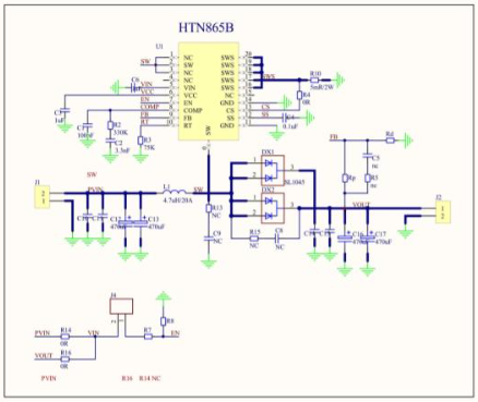 HTN865B采用峰值电流模式控制和外置补偿网络,更简单更灵活的使系统稳定。