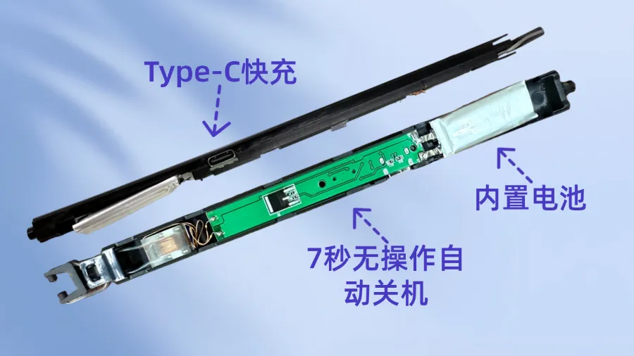 充电式与外接电源式电弧打火机方案均配备专用芯片、电弧头、双开关(上滑解锁+短按点火)及4级电量/指示灯;差异在于前者采用内置电池、Type-C快充接口,7秒无操作自动关机功能,后者采用Type-C外接接口,支持车载转换头扩展,依赖外部电源实现即用即取。