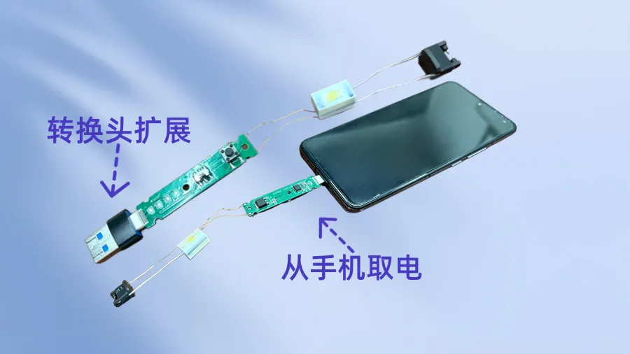 (1)我们以手机为例展示外接电源式电弧打火机方案——