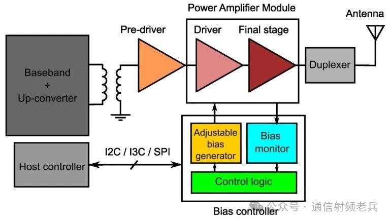 图1. 框图展示了一个PA模块及其偏置控制器。