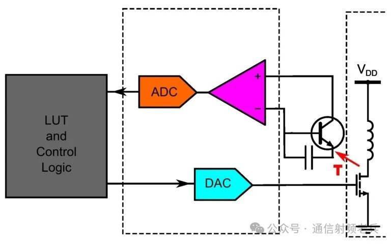 基于温度读数,控制逻辑可以根据预先确定的查找表(LUT)对PA进行偏置。可以使这个过程自动化,即电路定期测量温度并更新功率放大器的偏置电压。这可能比电流感应方法更简单,不过它也有自己的障碍。
