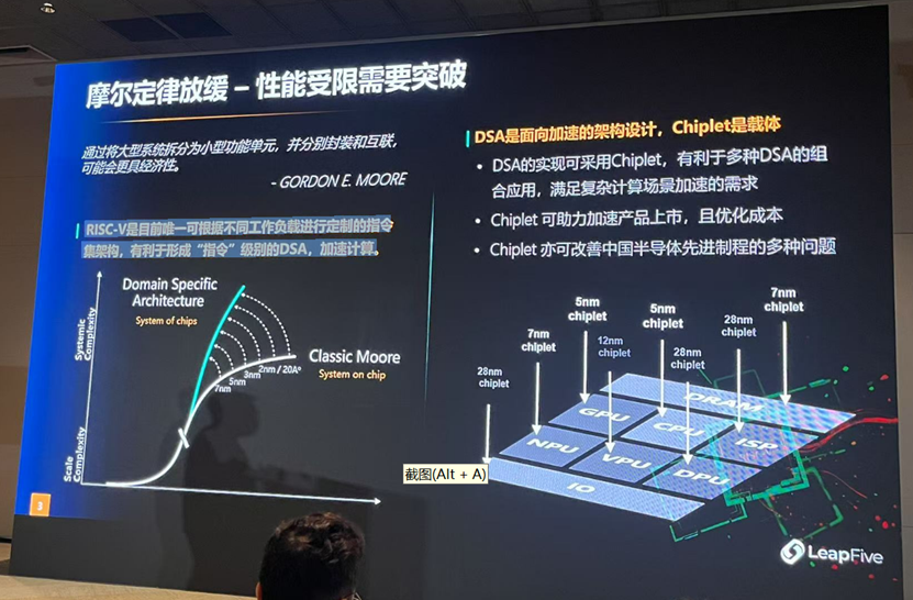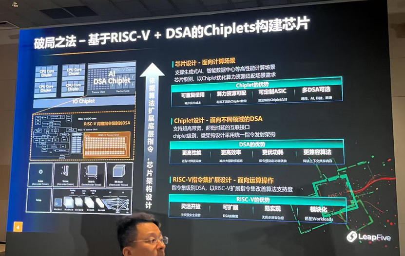 在这一背景下,跃昉科技COO袁博浒在“第五届RISC-V中国峰会” 上表示:“RISC-V指令集与领域专用架构(DSA)的结合,辅以Chiplet技术,正在成为突破摩尔定律限制、重塑全球AI格局的关键路径。”